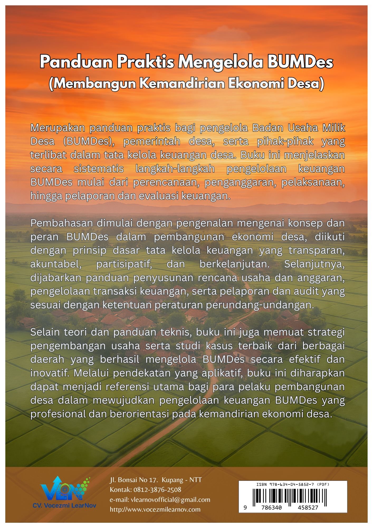Merupakan panduan praktis bagi pengelola Badan Usaha Milik Desa (BUMDes), pemerintah desa, serta pihak-pihak yang terlibat dalam tata kelola keuangan desa. Buku ini menjelaskan secara sistematis langkah-langkah pengelolaan keuangan BUMDes mulai dari perencanaan, penganggaran, pelaksanaan, hingga pelaporan dan evaluasi keuangan.